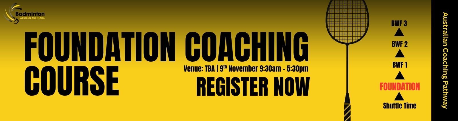 BA Foundation Coaching Course: Nov 9th @ TBA - Sign up here: https://badmintonwa.waarble.com/event/29141